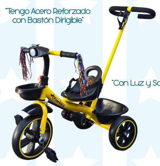 TRICICLO SUPER CON BASTON DIRIGIBLE CON LUZ Y SONIDO