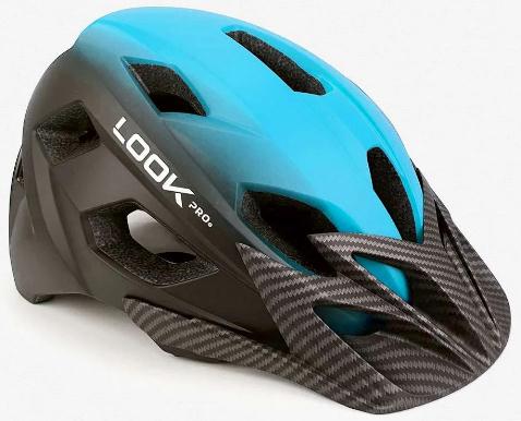 CASCO MTB UNIVERSAL, NEGRO/AZUL C/VISERA TIPO CARBON Y AJUSTADOR, LOOK PRO